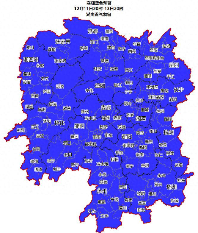 湖南省气象台12月11日16时发布寒潮蓝色预警: